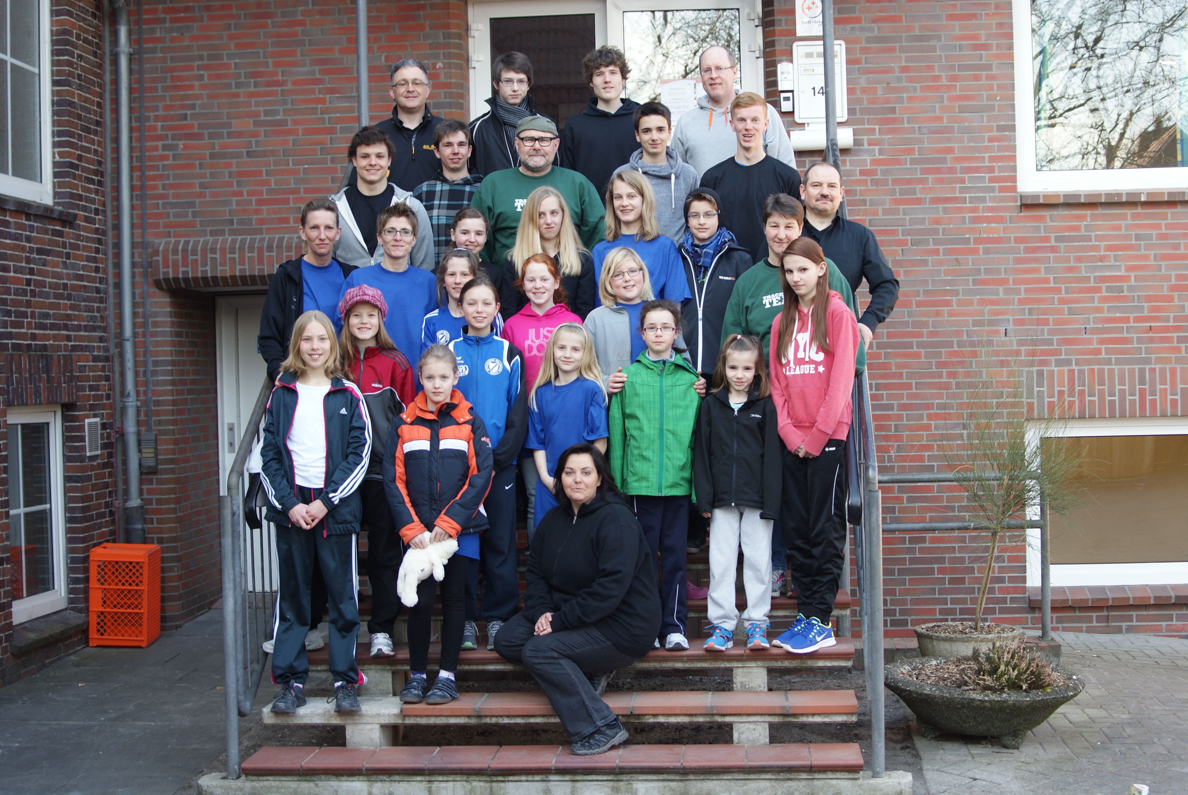 Vom 01.04. bis 06.04.2013 kam die Gruppe in der Jugendherberge Aurich unter. Es war ein Trainingslager der kurzen Wege, da alle Sportstätten neben der JH liegen. Wir nutzten das Hallenbad mit den Frühschwimmern (ab 6:45 Uhr) und natürlich das Stadion für bis zu vier Trainingseinheiten am Tag. Die Bedingungen waren fast optimal. Trotz kalter Temperaturen und teilweise eisigem Wind (was bei dem ein oder anderem zu extrem rauen Lippen und Händen führte), konnten sich die Athleten bei strahlendem Sonnenschein sehr gut auf die kommenden Wettkämpfe vorbereiten. Alle waren mit viel Ausdauer und Spaß bei der Sache, obwohl hier und da kleinere Beschwerden auftraten. Das Wort „Muskelkater“ wurde wohl am meisten genannt. Das eigens mit angereiste Pflegepersonal ("Schwester Elfi" lässt grüßen) hatte alle Hände voll zu tun. Viele der Schüler hatten sich ihre Ferien wohl anders vorgestellt.  Am Samstagmorgen, kurz vor der Abfahrt, ging eine kleine Gruppe noch einmal ins Hallenbad für eine letzte Trainingseinheit (4 der Erwachsenen absolvierten den Schwimmnachweis für das Sportabzeichen), bevor alle nach einem tollen Trainingslager, gut gelaunt, aber seeeehr müde, die Heimreise antraten.