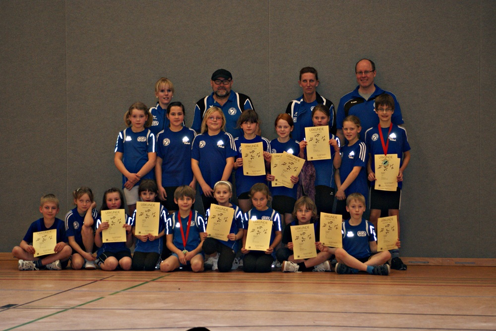 11.03.2012 Regionale Hallenkreismeisterschaften Kamp-Lintfort Vorweg sei eins verraten:2 Kreismeistertitel 2 Vizekreismeistertitel 4 x Platz 3 3 x Platz 4 1 x Platz 5 2 x Platz 6 4 x Platz 7 2 x Platz 8 Das sind die Ergebnisse der regionalen Hallenkreismeisterschaften von Sonntag in Kamp-Lintfort. Beklagen können wir uns nicht, nein, im Gegenteil: wir können RIESIG stolz auf unsere "Truppe" sein! Unsere Jüngsten (8 - 11 Jahre) zeigten sich bei den regionalen Hallenkreismeisterschaften in Kamp-Lintfort von ihrer besten Seite. Jeweils Kreismeister in ihrer Altersklasse im Standweitsprung wurden Benjamin Brockschmidt (M9) mit 1,99 m und Daniel Oppers (M10) mit 2,08 m. Beide siegten klar in ihrer Altersklasse. Über die 30 m belegte Benjamin im Finale Platz 4 mit 5,97 sec. und Daniel wurde 5. mit 5,83 sec. Niklas Winnekens (M9), erst seit kurzem aktiv, belegte bei den 30 m den 7. Platz mit 6,61 sec. und Fynn Hartmann (M9), ebenfalls erst kurz dabei, belegte Platz 8 im Standweitsprung mit 1,69 m. Anna-Lena Berninger (W8), gerade der Bambini-Gruppe entsprungen, machte es besonders spannend. Nach einem Fehlstart, auch diese Erfahrung muss ein junger Athlet einmal machen, blieb sie ganz sie selbst und konnte sich den Vize-Kreismeistertitel über die 30 m mit 6,02 sec. sichern. Im Standweitsprung mit 1,78 m wurde sie, dank "heimlichen Trainings im Kinderzimmer", ebenfalls Vize-Kreismeisterin. Hier fehlten lediglich 2 cm zu der Erstplatzierten. Ebenfalls für die finalen 30 m konnten sich Jenna Meyer, Adriana Terhorst und Alina Kaas qualifizieren. Jenna belegte mit 6,12 sec. Platz 4, Adriana mit 6,28 sec. Platz 6 und Alina mit 6,30 sec. Platz 7. Einen wirklich "gelassenen" Wettkampf absolvierte Fynn Gladziwa (M8), der ebenfalls das erste Mal auf Kreisebener startete. Im Vorlauf wurde er ganz klar Erster und war überrascht, dass er nochmal laufen "musste". (Wegen einer Rempelei mit Sturz, musste der Vorlauf wiederholt werden.) Auch im "2." Vorlauf siegte er wiederum klar und war umso überraschter, dass er ein weiteres Mal laufen sollte. Im Finale über die 30 m belegte er letztendlich Platz 3 mit tollen 6,12 sec. Im Standweitsprung wurde er ebenfalls 3. mit 1,67 m. "Besonders gefreut hat uns, dass keiner von den "Kurzen" ohne Urkunde heimgehen musste", so Janine und Andrea. In der AK W9 belegte Laureen Eylander mit 1,68 im Standweitsprung den 7. Platz. Auch über die 30 m konnte sie sich im Vorlauf qualifizieren und belegte letztendlich Platz 3 mit 5,84 sec. Auch bei den "alten Hasen" gab es gute Ergebnisse. Hannah Kempken (W10) belegte Platz 6 mit 1,95 m im Standweitsprung, dicht gefolgt von Vereinskollegin Karla Dohmen mit 1,93 m (Platz 7). Über die 30 m konnte sich Hannah im Vorlauf mit 5,55 sec. qualifizieren. Karla, die klar mit 5,71 sec. im Vorlauf Erste wurde, hatte leider das Nachsehen in diesem starken Teilnehmerfeld und konnte sich nicht qualifizieren. Lediglich 4-Zehntel fehlten, um sich zu qualifizieren. Im Finale über die 30 m belegte Hannah schließlich Platz 8 mit 5,68 sec. In der AK W11 war Marie Müller die überragendste Athletin des SV Millingen. Platz 3 beim Standweitsprung mit 2,10 m (die Zweitplatzierte sprang ebenfalls 2,10 m, konnte allerdings vorher einen besseren Sprung für sich verbuchen). Marie qualifizierte sich ebenfalls für die 30 m und belegte hier einen feinen 4. Platz mit 5,45 sec. Das "Highlight" einer jeder Meisterschaft sind die Staffeln! Erstmals in der Millinger-Leichtathletik-Geschichte konnten wir eine Jungen-Staffel melden. Die Jungs (oder auch liebevoll "Schnuckis" von Janine genannt) haben ihre Sache wirklich gut gemeistert, wenn man bedenkt, dass sie noch nie gemeinsam trainiert haben. Das Ergebnis lautete Platz 5 mit 77,4 sec. Darauf bauen wir auf! Auch die Staffel der AK W8 machte ihre Sache wirklich gut und belegte mit 77,3 sec. den 5. Platz. Weiter so, Mädels!!!! Die Staffeln W U12 belegten den 5. und 7. Platz mit 64,8 sec. und 65,6 sec. Auch hier sei gesagt, wir arbeiten daran und weiter so!!!! Die Bilder findet ihr in der Galerie. Alle Ergebnisse unter: www.lvn-kreis-rhein-lippe.de